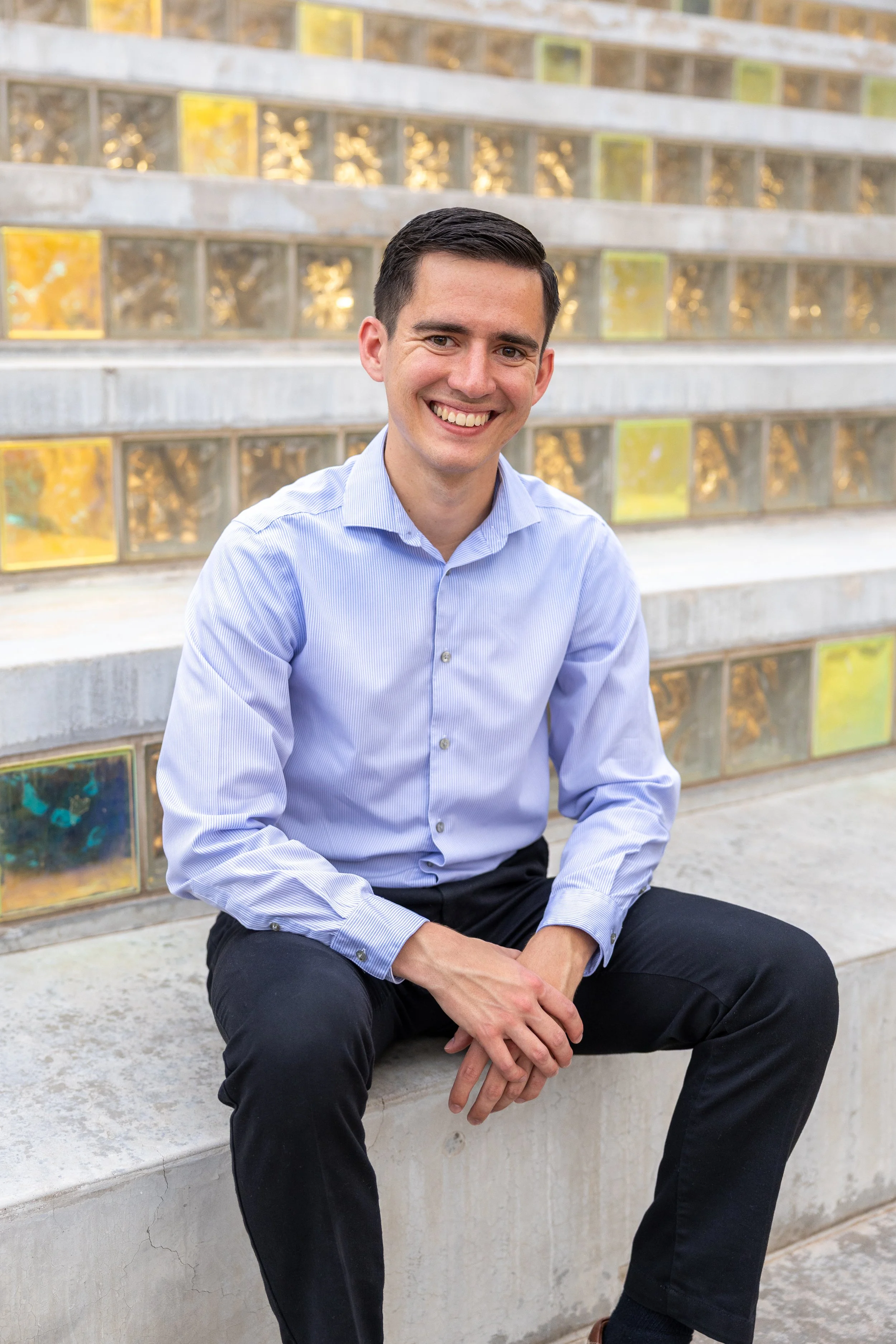 Modern architecture, colorful walls, urban feel.